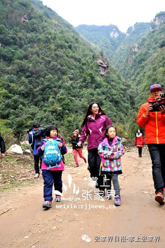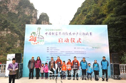 掌上张家界12月6日讯(记者向欣 图/鄢渊)12月6日上午11时,2014张家界网络大咖户外挑战赛鸣锣开赛。9名网络大咖分成蓝、橙、紫3组,分别带领一名留守儿童参与正式挑战。
