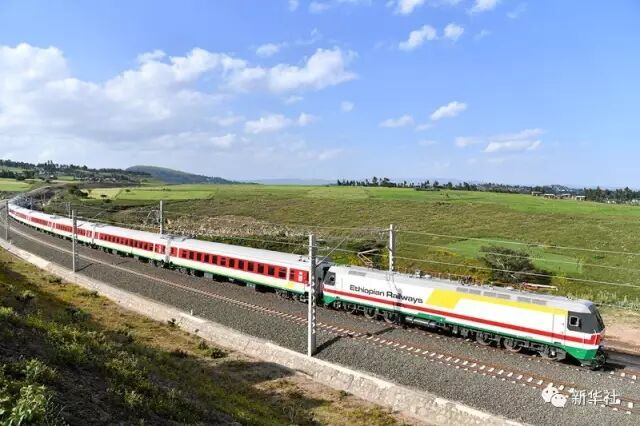 2016年10月3日,由中国企业建设的亚的斯亚贝巴至吉布提铁路上,一列试运行列车正在行驶。新华社记者 孙瑞博 摄