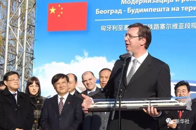 2015年12月23日,在塞尔维亚诺维萨德举行的匈塞铁路塞尔维亚段启动仪式上,塞尔维亚总理武契奇致辞。新华社发(内马尼亚·恰布里奇摄)