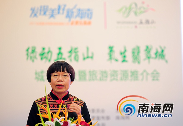 五指山市委常委 、宣传部长王楚蝶进行城市推介。南海网记者 沙晓峰 摄