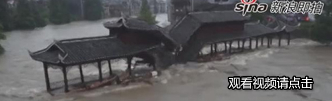 7月15日,湖南凤凰古城因持续数天的特大暴雨造成特大洪水,多处房屋被淹,视频记录了巨大洪流冲垮一座小桥的震撼瞬间。