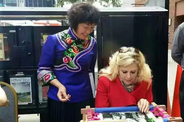 最关心的是农村留守儿童 在张家界,张绣云不仅是土家刺绣响当当的明星,也是公益明星。 自2008年创业以来,张绣云每年捐赠的物资都在2万元以上,10多年来累计捐赠的善款超过了30万元。 但真正把公益当成事业来干,还得从2017年加入张家界微爱公益服务中心算起。 “以她的感染力,来号召更多的志愿者。”微爱公益服务中心负责人周海燕坦言,邀请张绣云加入是有“私心”的,但这也是每一位公益人的初心。周海燕说,加入中心的张绣云积极肯干,不仅发起了“针尖上的传承”这一志愿项目,还经常提着水果、保健品去探望敬老院的孤寡老人,时常为重病在床的陌生人“雪中送炭”,冒着酷暑开展巡河、护河等行动。 张绣云最关心的还是农村留守儿童。这些年,张绣云为他们提供力所能及的帮助:沅古坪镇的两个小女孩不再因贫而辍学,崇实机场南校的某女孩不再为生活费发愁,关门岩小学的某女孩也不再自闭而变得开朗乐观……
