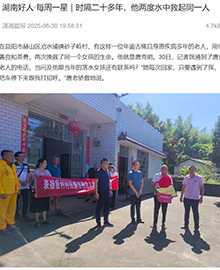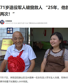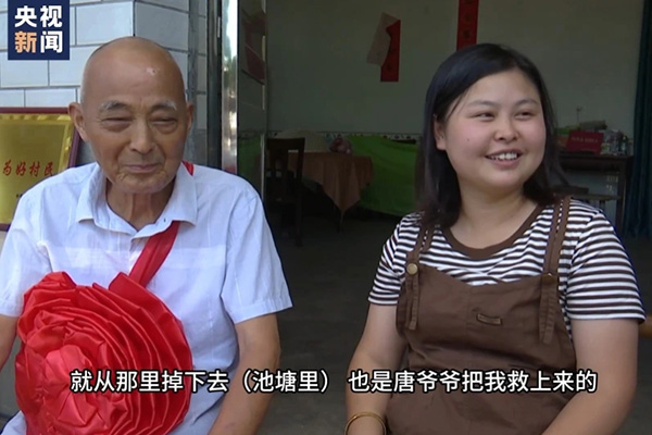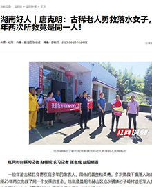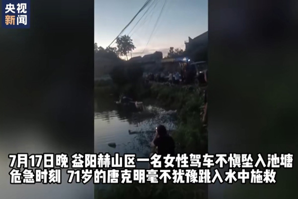 多次勇救落水者 2024年7月17日下午,正在自家厨房做晚饭的唐克明突然听到屋外传来呼喊声:“救命!救命!”他立即放下手头的事,循声出门,一眼就看到了家门口的山塘里有一辆红色小轿车,车头扎进了水里,还在下沉,只露出一小截车尾。 唐克明立即冲回家里,拿起锤子赶回水塘边。为减轻阻力,他迅速脱下长裤和鞋子,跳进水里。游到车辆旁边后,唐克明使劲砸窗,连续砸了四五下后,车窗终于被砸开。 “不要慌,别着急,把手给我,我拉你出来。”唐克明一边施救,一边沉着冷静地指挥落水者,还不时安慰她,帮她缓解紧张情绪。几分钟后,落水女子终于被唐克明救上了岸。 被救的女子名叫徐灿,说起当时的情景,她仍然显得特别后怕。“我的头被卡住了,车子在往下沉,当时要是没有唐爹发现施救的话,后果真的不堪设想。” 令人意想不到的是,这竟然是唐克明第二次救徐灿,第一次是在25年前。当时还在上小学一年级的徐灿因贪玩滑落山塘,千钧一发之际,唐克明赶紧跳下水把她救了上来。“唐爹不仅救了我,还担心我被家长骂,一直都没有提起过这件事。”徐灿感激地说。因两次施救的特别缘分,徐灿不仅逢年过节上门拜节唐克明,两家人平时也经常走动,拉拉家常。