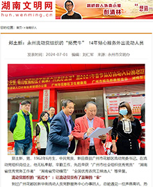 回顾10多年来的流动党组织工作,郑土新说:“我大部分的时间、精力和智慧都用在服务流动人口事业上,不管是在探索流动党员管理,还是帮助流动人口解决实际困难,我始终牢记共产党员第一身份,立足本职,发挥自身优势。那句“没得办法了,我只有找郑书记”的口头禅,正是老乡们对他“定心丸”作用最朴实的认可。面对赞誉,他想的仍是“还没做完”——让更多漂泊的乡亲在异乡扎根、过得更好,就是他书写“优秀和辉煌”的方式。(来源:潇湘晨报 记者 邓舒文 实习生 侯宝睿) |