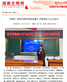 【湖南好人·每周一星】尹敏芸:用双肩撑起两个“家” “学生是我的精神寄托,是我获得短暂快乐的源泉,因为家里的不幸实在是太多了,太痛苦了。”尹敏芸在电话那头说道。 尹敏芸,是孝老爱亲类“湖南好人”,是衡阳市常宁市第二中学正高级教师,是照护生病爱人17年的妻子,是赡养母亲35年的女儿,是把女儿培养成硕士研究生的母亲,是一个在命运的打击下一次次重新站起的女人。正如她的名字,她是一片有草遮挡的云,虽有阴影,但足够强韧。