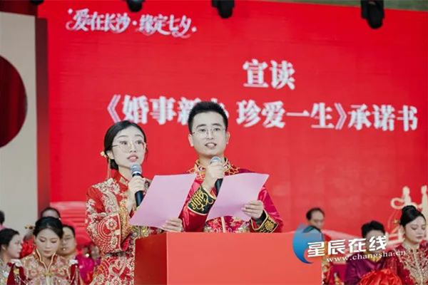 鹊桥如梦,河街溢彩。在这个承载着千年浪漫的七夕之夜,2025年湖南省“我们的节日·七夕”主题文化活动暨第十届国潮集体婚礼传统文化秀活动盛大启幕。77对新人用他们独有的方式在这里传承美好、守望真情。详细>>