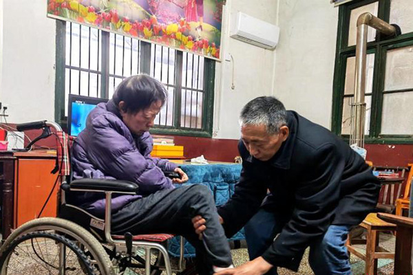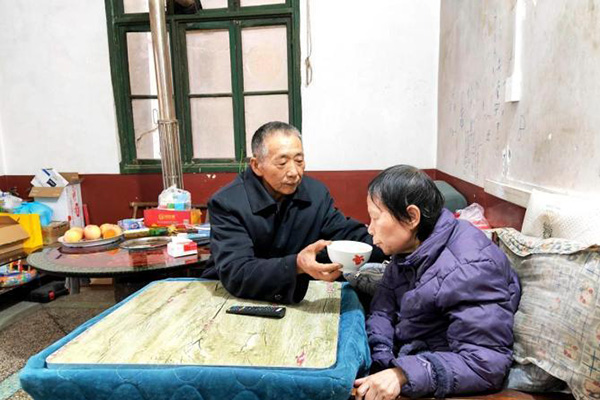 一场突如其来的变故,让这个温馨幸福的家庭蒙上阴影。2007年7月的一天,朱建珍突发脑溢血中风,被鉴定为肢体二级残疾。此后,她留下了偏瘫、语言障碍、大小便失禁等后遗症,生活无法自理。 “这种病没有其他法子治,就是好好疗养。”医生的话,傅有良牢记在心。从医院接回妻子后,他就在工地和家里两头跑,每天为妻子擦拭、按摩。他从一个医护的“门外汉”,变成掌握不少康复技巧的“专家”。在他的精心照料下,多年卧床不起的妻子身上,前17年未生过一次褥疮。为让妻子恢复得更好,傅有良四处问医寻药、查找资料,学习各种康复知识,从简单的绳索到先进的理疗仪,都是他精心挑选的护理工具。他天天手工制作妻子爱喝的擂茶,想方设法讲笑话,逗妻子开心。