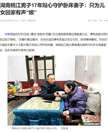 【湖南好人·每周一星】傅有良:十八年如一日照顾瘫痪的妻子 牛奶、米饭、鸡肉、大虾、蔬菜一起煮熟后,打成糊状,再用注射器喂给瘫痪昏迷的妻子朱建珍,这是桃江县大栗港镇先锋桥村村民傅有良每天晨起的“功课”。 然后,傅有良给妻子按摩,手法是从书上学的,舒筋活络的穴位早已了然于胸。接着,给妻子身上的两个褥疮上药。医院开的常规药效果不理想,傅有良四处求医,苦心觅得七八种药物混合施用,碗大的伤口渐渐愈合到只有一个手指大小。