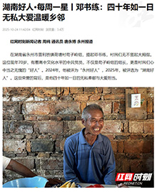 邓书练用四十年的坚守和付出,书写了一段段感人至深的爱心故事。他的善行义举不仅温暖了乡邻的心田,他的故事,也将激励着更多的人投身到公益事业中去,共同书写新时代的爱心篇章。 |