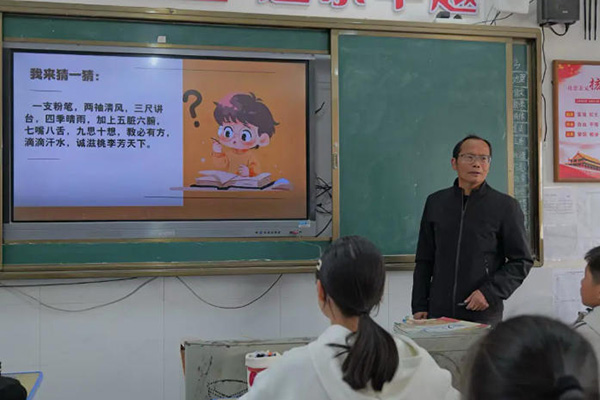 在农村出生、长大的他,知道农村娃的不容易。从那以后,颜学清再也没有过“胡思乱想”,一心一意坚守着三尺讲台和他的学生。后来,他又有3次进城工作的机会,他都果断选择放弃。 曾经有个学生小亮(化名),出生后不久母亲就不知去向,父亲也常年在外打工。小亮准备辍学回家务农,放心不下的颜学清就把他接到桥江镇中学,带在身边,帮助他完成学业。 任教36年来,颜学清送出去7000多名毕业生,其中有不少人回到教育一线。仅在桥江镇中学,就有10多名曾经的学生成了他的同事。 一心教好一门课,点亮孩子眼中光 从曾经的“初中政治”,到现在的“道德与法治”,学科名称、内容知识、教学重点都在不断与时俱进。36年来,颜学清一直在专注教好这门课程。 在桥江镇中学,留守儿童占70%以上。因家庭关爱教育的缺失,少数孩子身上出现自卑、厌学、孤僻的心理。