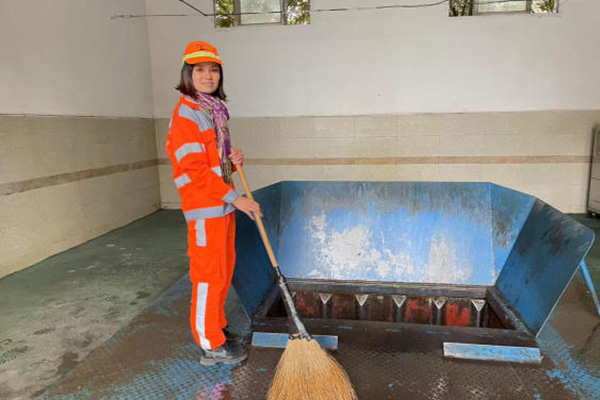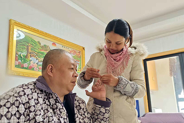 日复一日的坚守换来奇迹。一年后,李应强的手臂逐渐恢复知觉。姜灿进一步根据他的手臂活动角度和力度,量身制作专用餐具,陪着他反复练习进食动作。 在姜灿家中,记者看到常年卧床的李应强,面色红润、衣着整洁,能独立完成吃饭、喝水等日常动作。“没有她,我早撑不下去了。”李应强望着妻子的眼神里,满是依赖与感恩。 传递温暖,她是照亮街巷的“一束微光” “公婆辛苦了一辈子,不能让他们晚年再操心。”作为儿媳,姜灿将孝心融入日常点滴。 每次下班回家,姜灿主动包揽洗衣做饭、打扫卫生等家务,全力减轻老人负担。婆婆提起她忍不住落泪:“都是靠她,这个家才没散,她比亲闺女还贴心。” 生活担子虽重,但姜灿一点也没落下工作。作为一名环卫工人,姜灿负责的片区包含垃圾中转站和多条主次干道,工作繁重且环境恶劣。无论严寒酷暑,她始终兢兢业业,把责任区域打扫得干干净净。“这份工作虽苦,但能养家糊口,还能为城市添一份洁净,我很满足。”姜灿说。