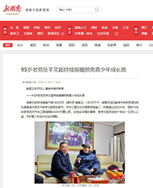【湖南好人·每周一星】羊文超:把行善写进生命的每一天 3月5日,娄底市镇星恒苑小区,初春的阳光透过窗户,洒进羊文超家里。房内陈设朴素,却整洁而温馨。95岁的羊文超坐在沙发上,说起自己帮助过的那些人和事,眼里闪着光,神采飞扬。 “每捐赠一笔款,每帮助一个人,都会让我快乐一阵子。”羊文超笑着对记者说。 1931年出生的羊文超,是一名老党员。他坚持日行一善,以帮助他人为乐,2024年获评助人为乐类“湖南好人”。 善的种子,早在童年就已种下。
