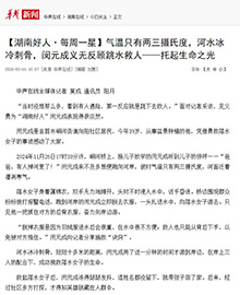 2024年11月26日17时30分许,峒河桥上,接儿子放学的闵元成听到儿子的惊呼——“爸爸,有人掉河里了!”闵元成来不及多想便跑向河岸,彼时气温只有两三摄氏度,河面泛着凛冽寒气。 落水女子身着薄棉衣,双手无力地摊开,头时不时浸入水中,近乎昏迷。桥边围观群众纷纷拨打报警电话,跑到河岸的闵元成立即脱去衣服,一头扎进水中,向落水女子游去。只见他一把抓住对方的后背衣服,奋力向岸边游。 “脱掉衣服是因为羽绒服进水后会很重,在水中很不方便;救人也只能从背后下手,以免被对方抱住。”闵元成向记者分享施救“诀窍”。 河水冰冷刺骨,短短十多米的距离,闵元成用了近一分钟的时间才游到岸边,在岸上三人的配合下,成功挽救落水女子的生命。 救起落水女子后,闵元成冻得瑟瑟发抖,连姓名都没留下,就带孩子回了家。后来,经过社区多方打探,才得知英雄就藏在人群中。 闵元成英勇救人的事迹在吉首市引起很大反响,当如潮好评涌来时,他坦然说:“我自幼生活在峒河边,熟悉水性,遇到群众有危难,挺身而出是义不容辞的责任。” 这并非闵元成第一次救人,青年时期他就曾救过3人。